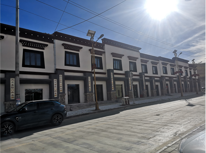 德吉路1、2号门面房目前共25间,童嘎路东段1、2号门面房目前共27间。按照测量报告,4栋门面房建筑面积共6110.36㎡,占地4532.22㎡。该门面房建设于2017年10月,于2019年11月组织验收,项目定位为门面房,装修为简装。德吉路周边为我县重点打造的居民,干部职工住宅区和办公区。周边居住户数达到650余户,北侧为办公、教育、住宅用地,现有政府综合办公楼、干部职工居住区、县中学、完小等。西侧为县公安局、廉租住房小区、团结居委会等。南侧紧挨国道345。童嘎路南侧为住宅及商业。住户共104户、塔杰居委会所在地,同时建筑体量较大、设施齐全的县扶贫门面房也在南侧。西侧为国家能源集团有限公司援建的希望小学,招生规模1500人,于2020年秋季招生。随着我县藏医事业的不断发展,现有藏医院建设用地远远不能满足后期建设需求,经县委、县府研究,基本确定该区域北侧用地用于搬迁藏医院,近期正在启动相关项目。近年来我县加大基础设施建设力度、周边路网已形成、上下水同步建成。 |