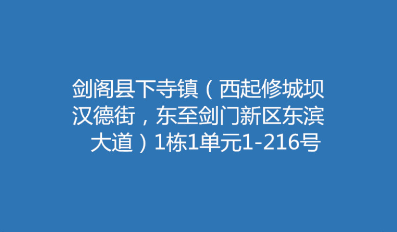 | 广元农村商业银行持有的房产公开招租(第二批)——剑阁县下寺镇(西起修城坝汉德街,东至剑门新区东滨大道)1栋1单元1-219 |