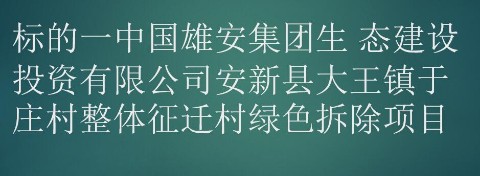 标的一中国雄安集团生 态建设投资有限公司安新县大王镇于庄村整体征迁村绿色拆除项目
